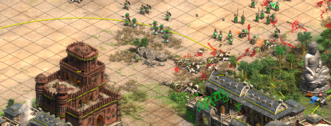 成功完成初始的禅修任务后,玩家将获得两座新的基地与大量资源奖励,此时战役进入中期攻防相持阶段。获得的两座基地需要快速建设箭塔与城堡,以形成坚固的防线,尤其在南方的桥头堡位置,需部署打包机与战象来防止敌方的地面推进。
