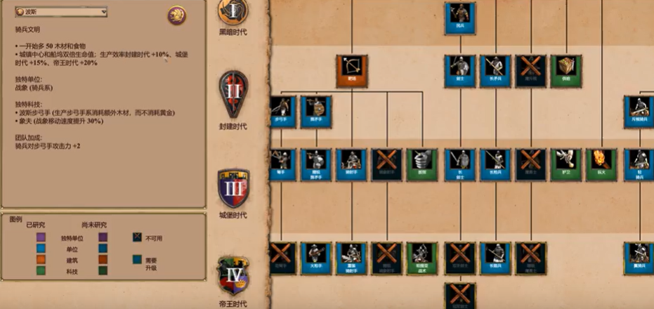 波斯常被认为是后期正面作战能力顶尖的文明之一,其核心优势在于强大的骑兵体系,特别是生命值高达600点的战象。这个单位以其惊人的耐久力和集群后恐怖的破坏力著称,虽然移动缓慢,但一旦成型并得到其他兵种保护,很难被阻挡。波斯的经济也颇为出色,农民和渔船的工作效率加成让他们能更快速地积累资源,为昂贵但强大的军事单位提供支持。其特有科技沸城还能进一步提升对抗攻城武器的能力,使得他们的推进更加稳固。