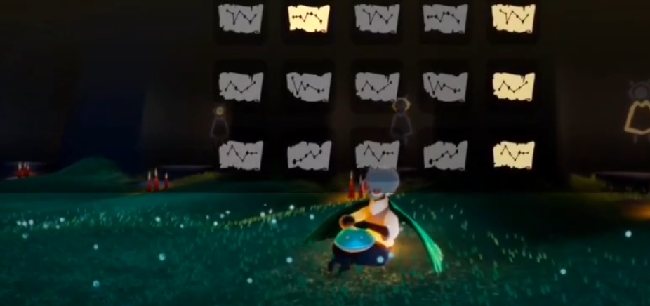 除了当乐器,龟壳还能和大海龟互动玩耍。在海洋节活动期间,整点和半点时圣岛会出现巡游的大海龟,背上长着黑暗植物可以烧掉获取烛火。这时候带着你的小龟壳站在海龟背上,它会带着你慢慢游动,沿途掉落烛火自动收集超方便。要注意海龟每次只停留20分钟,错过就要等下次啦。如果发现海龟不见了,可以试着潜入海底找找,有时候它会躲在先祖附近的深水区。