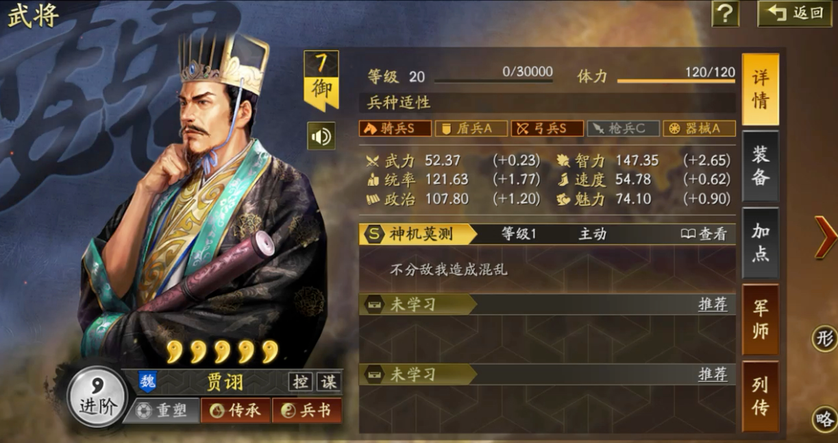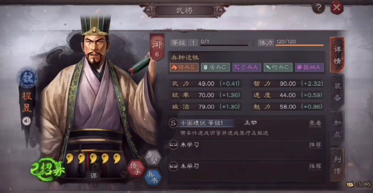 曹操兵书选择援其必攻+励军+掩虚,增强辅助能力;贾诩带奇正相生+文韬+执锐,提高输出稳定性;程昱或郝昭推荐惜兵爱民+守势+防备,增加生存。如果红度较低,可放弃部分输出战法,改用御敌屏障等低配减伤。