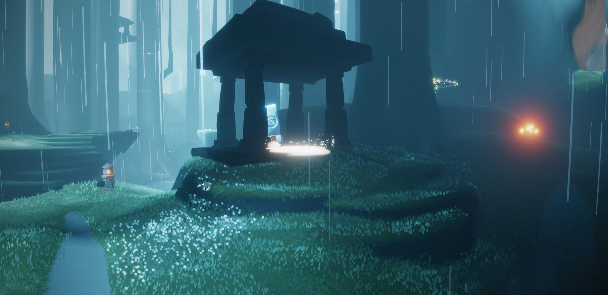 穿越雨林上空的云彩需要特别注意雨水的影响。雨林的云层带有湿润特性,飞行时斗篷能量会逐渐消耗,所以一定要提前储备足够的光之翼。建议沿着雨林边缘飞行,那里有更多避雨的平台和蜡烛。如果能量不足,可以降落在荧光蘑菇或亭子附近点燃蜡烛恢复。雨林右侧亭子所山洞是个很好的中途休息点,记得合理规划飞行路线哦。
