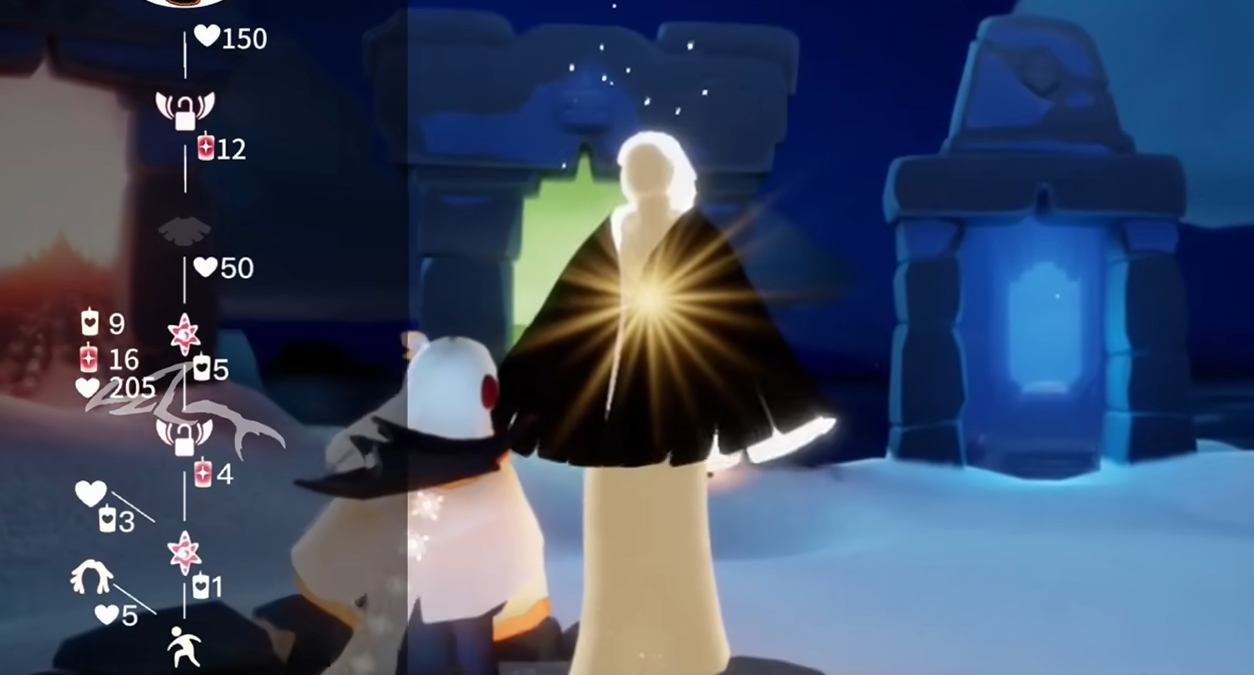 完成全部记忆碎片收集后,先祖会出现在沉船高台上,需与之互动并消耗常规蜡烛解锁动作节点。躲藏站姿属于基础动作无需额外爱心兑换,但解锁高阶表情需要星之烛。该动作在跑图中可用于快速隐藏角色,配合矮人面具能实现特殊地形穿越效果。