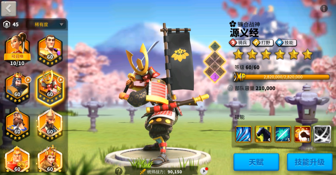 曹操和源义经这对骑兵组合在游戏前期可是相当给力的选择,他俩都是技能输出型武将,搭配起来能打出爆炸伤害。源义经做主将时,主动技能伤害系数高,还能概率触发额外伤害,曹操作为副将可以提供骑兵攻击加成和移速提升,让队伍更灵活。这对组合特别适合正面野战和集结玩法,打野蛮人也有额外伤害加成,可以说是前期开荒的黄金搭档。