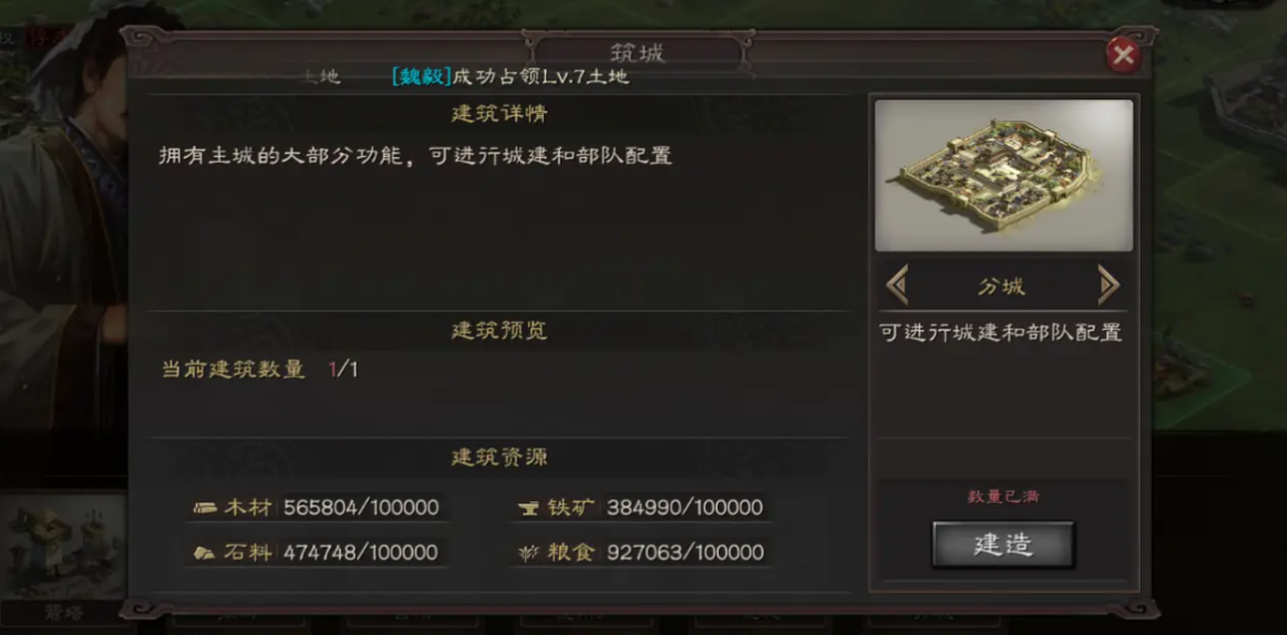 分城不仅能扩展势力范围,还能通过升级圆丘坛进一步提升领地上限。每建一座分城并满级圆丘坛,就能多占25块资源地。分城的建设和维护需要投入大量资源,建议优先确保主城稳定后再考虑分城。分城的位置也很关键,选在资源密集或战略要地附近会更划算。