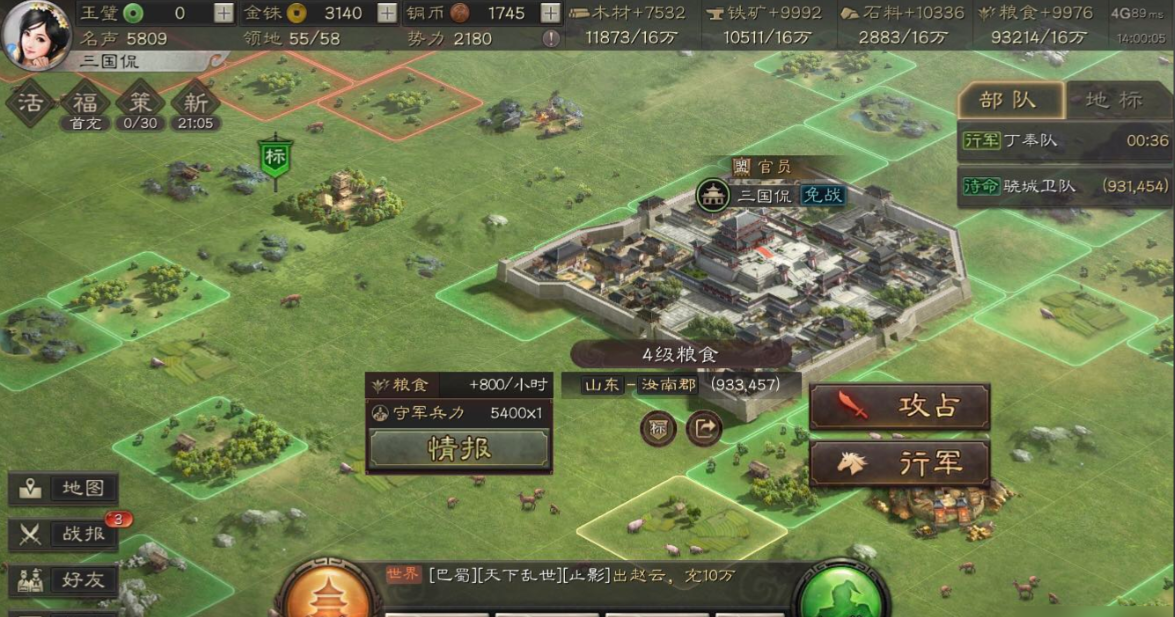 攻占6级城可不是一件简单的事,咱们得先做好充分准备。首先得摸清楚敌方守军的配置,6级城通常有两队守军,每队兵力都在15000左右,而且战斗时间限制在5分钟内。建议咱们的主力队伍兵力至少达到12000,再搭配一支6000左右的清扫队作为后备。侦查环节绝对不能省,提前了解守军的兵种和武将配置,才能针对性地派出克制阵容,减少战损。粮草和资源也得备足,尤其是石头和铁矿,这些在攻城过程中消耗很大。