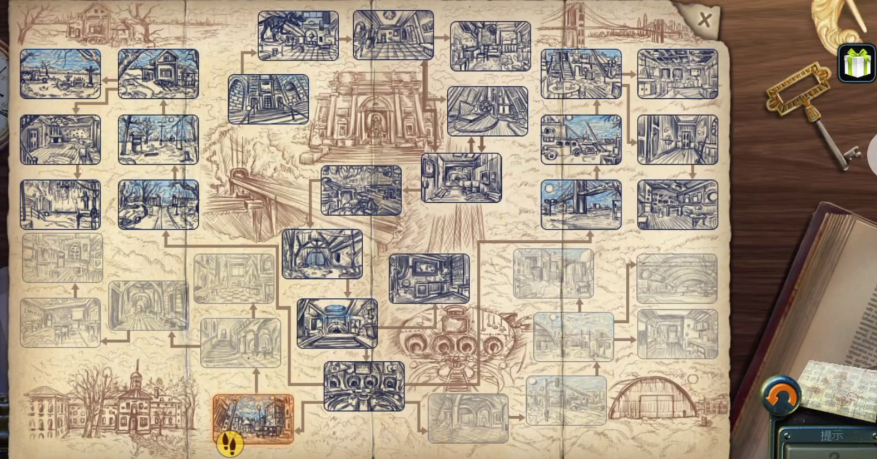进入关卡后,仔细观察场景,通常在实验室或书房这类地方能找到黑板和粉笔。比如在某个关卡里,你需要先点击台阶拿到剪刀,剪断电线后接上门铃进入博物馆。接着在置物架找到面具并摆放到右侧柜子上,移开柜子会发现秘密通道。粉笔藏在抽屉里,记得用钥匙打开抽屉仔细翻找哦。