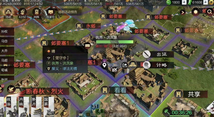 警戒所要满级以增强守城兵力,配合郝昭、刘备等具有伤兵回复效果的武将,能最大限度保留战力。推荐配置3队主力+1队拆迁+1队驻守的组合,避免资源过度消耗。面对压秒进攻时,要提前撤离或增加驻守队伍。利用掠夺状态阻止敌方建造要塞,可以拖延战线。注意观察敌方行军外观,优先攻击可克制的队伍以确保胜利。