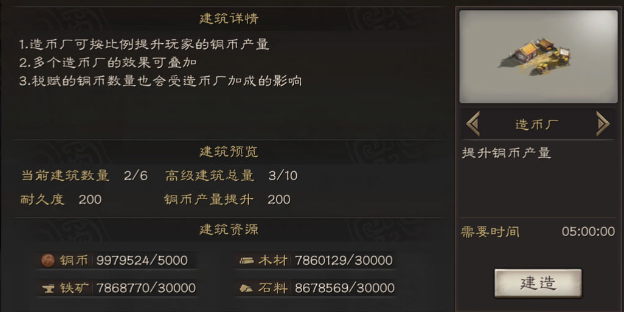 地图上的铜矿尽量挑高级的打,虽然难度大点,但收益也高得多。造币厂建议先升到四级,等产量稳定了再冲五级,这样性价比更高。如果你是侠客军玩法,记得多盯着敌对势力的高级造币厂打,抢一波资源比慢慢攒快多了。战功商店也能换铜钱,打架赢了别光顾着高兴,顺手把战功换成资源才是老玩家的操作。