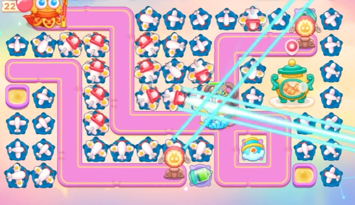 道具使用方面,关键时刻的飞机轰炸可以解决漏网之鱼,但尽量留着对付BOSS。如果发现某条路线压力过大,及时暂停调整炮塔位置比盲目升级更有效。这关的宝箱位置比较分散,建议用船锚的溅射特性顺便清理,没必要专门为开图浪费输出。这关的炮塔组合其实挺灵活的,重点是掌握好魔法球和船锚的搭配节奏。
