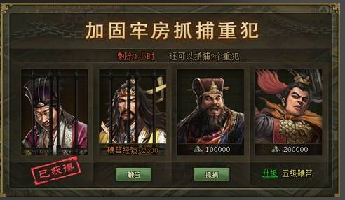 在战斗中击败敌方部队时,若对方防守兵力超过己方入侵兵力,即可俘虏敌方士兵并关入牢房。被关押的武将或士兵会暂时失去行动能力,但30秒后可通过逃跑机制恢复。牢房等级越高,压制敌方出兵的效果越明显。新版牢房新增劳作功能,当俘虏数量达标时可命令其劳作以获取经验,免费次数用完后需消耗金币继续执行。