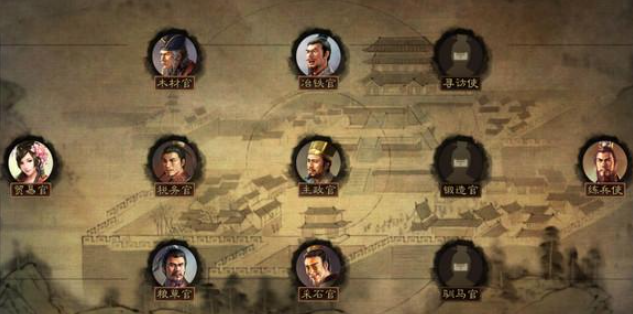 主城资源建筑需均衡升级,优先将采石处、冶铁台等设施提升至10级以解锁委任官职。主政官选择政治属性高的武将,其他资源官优先考虑自带增产战法的角色,如荀彧、糜竺等。委任加成的累积效果在长期发展中至关重要,不可忽视。