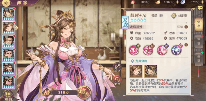 阵容搭配方面,张春华与蹇硕的组合具有战略必要性,后者拉条能力可打乱敌方节奏创造输出窗口。吕玲绮提供的30%暴伤加成和破防效果能显著提升爆发伤害,貂蝉的增伤机制则可强化收割能力。实战中需保持战意资源充足,关键回合释放绝技形成压制,面对治疗系敌人时应优先集火避免节奏中断。