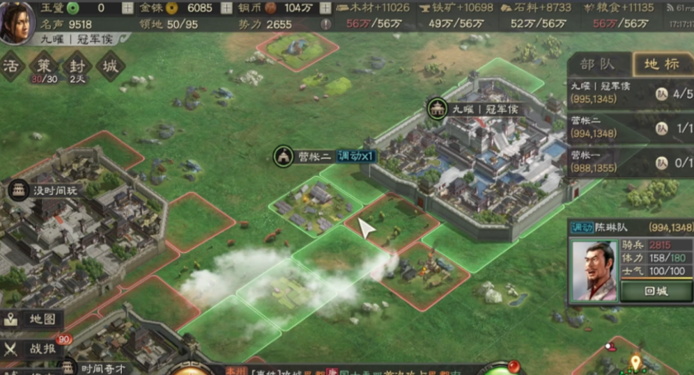 军团的核心功能在于集结多支队伍统一行动。太守作为指挥官可集结最多50支器械部队或五支玩家队伍,通过郡城界面进行调配。部队移动速度以军团内最慢单位为准,因此需优先优化器械兵种的行军科技。攻城时需分阶段操作:主力部队先清除守军,再派遣器械队拆毁城防,同时在一环建造拒马、二环部署箭塔形成防御屏障。注意军团无法直接调动营帐,需通过郡城或要塞中转。