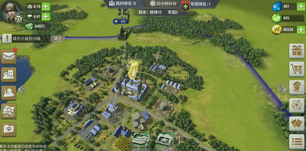 平时多占几个野地采集宝物,优先升级钢和橡胶产量,这样才有足够资源造高级兵种。科技方面重点提升炮兵和攻城车的伤害,有条件的话把行军速度也点一下,方便快速调整阵型。加入活跃军团能拿到额外资源援助,打炮塔时还能喊盟友帮忙,比如让他们派兵牵制周边敌人,或者提供远程火力支援。