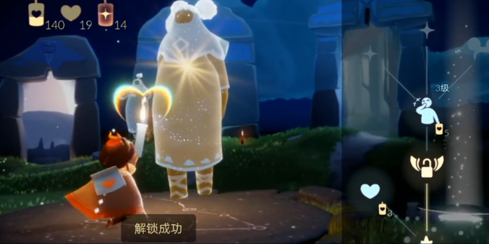到达献祭区域后,需要点燃烛台再献祭光之翼。靠近先祖会出现献祭图标,点击后就能将光之翼献给先祖。献祭路线是固定的,不要在第一阶段和第二阶段反复横跳。路上可以点亮石灯提高容错率,如果被砸灭心火,立刻返回已点亮的石灯恢复。