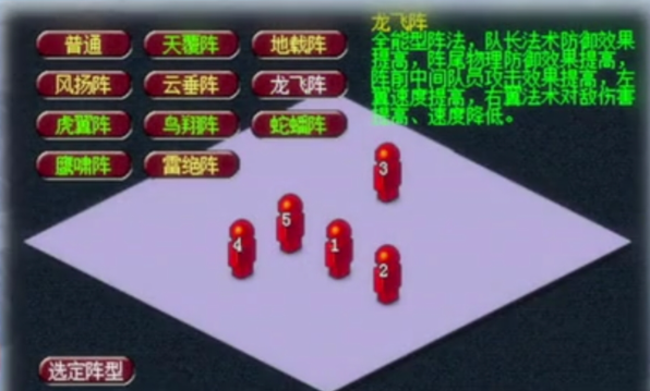 龙飞阵是最全面的选择,兼顾伤害、速度和防御加成,适合大多数队伍配置。天覆阵则偏重防御,适合持久战或队伍生存能力较弱的情况。风卷阵能提升速度优势,适合需要先手控制的队伍,而地裂阵和云垂阵分别强化物理和法术输出,适合单一输出类型的队伍。