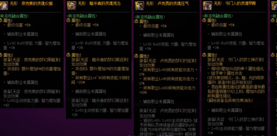 希洛克装备与巨龙套的融合需通过净化之圣杯系统完成,融合后保留原装备属性并追加希洛克专属词条。下装、戒指和左槽部位的希洛克装备属性1固定为5%伤害类加成,属性2则根据套装类型变化。奈克斯的属性2提供5%力智或三攻,守门人则循环赋予单属强加成和属性攻击。武器需使用无形残香赋予属性,随机获得6%-10%的伤害词条或功能性效果。融合时需消耗堇青石、灵魂之源等材料,且每次变更属性需消耗紫英花瓣,建议提前储备资源。
