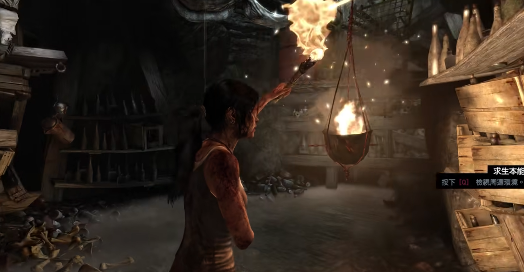 古墓丽影9的核心任务流程围绕劳拉在邪马台岛的生存与探索展开。游戏初期需要掌握基础生存技能,包括逃离山洞、寻找食物和武器。序章中劳拉被倒吊在洞穴,需左右摆动身体触碰火焰烧断绳索,随后拔出腰部的铁钉并利用火把点燃障碍物开辟道路。这一阶段的关键在于熟悉环境互动机制,如火把点燃布条引燃油桶炸开通路,以及快速反应摆脱拾荒者的追击。洞穴内的解谜要素要求观察细节,例如烧断水闸木棒拦截货物制造爆炸条件。