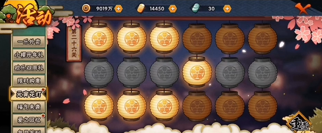 花灯玩法的核心原理是十字架变化规则,每次点击一个花灯,它本身和上下左右四个相邻的花灯都会改变状态。这种连锁反应的设计让解谜过程变得有趣又需要动脑。在26关里,你会发现有些花灯需要被多次触发才能达到理想效果,所以千万别着急,耐心观察每次点击后的变化。如果中途不小心点错了,可以退出重来,系统会重置到初始状态。