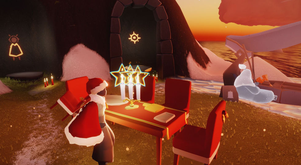 进入办公室兑换红斗篷时,需从禁阁地图右侧通道飞行至隐藏区域。门口会有蓝色斗篷NPC引导,与其互动后牵手即可传送至内部。办公室屋顶区域设有发光的圣诞树,左侧即可找到穿戴红色斗篷的兑换先祖。若遇到进入困难的情况,可尝试在禁阁入口处使用矮人面具遁地技巧,或等待其他玩家协助开启双人门。