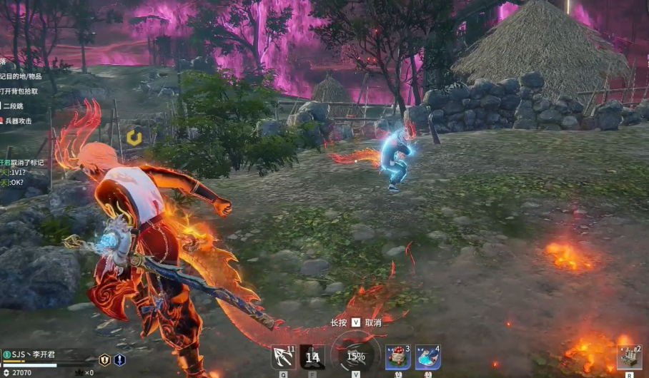 新手任务的核心是熟悉基础操作和战斗机制。初次进入游戏时会自动进入新手教程模式,如果错过引导,可以在主界面的自由练习中选择操作教学或进阶教学重新学习。重点掌握移动(WASD)、跳跃(空格)、攀爬(长按空格)以及轻攻击(鼠标左键)和重攻击(鼠标右键)的区别。完成基础教学后,系统会引导你逐步解锁更复杂的操作,比如振刀(同时按左右键)和技能释放(F/V键)。这些是后续战斗的基础,务必耐心练习。