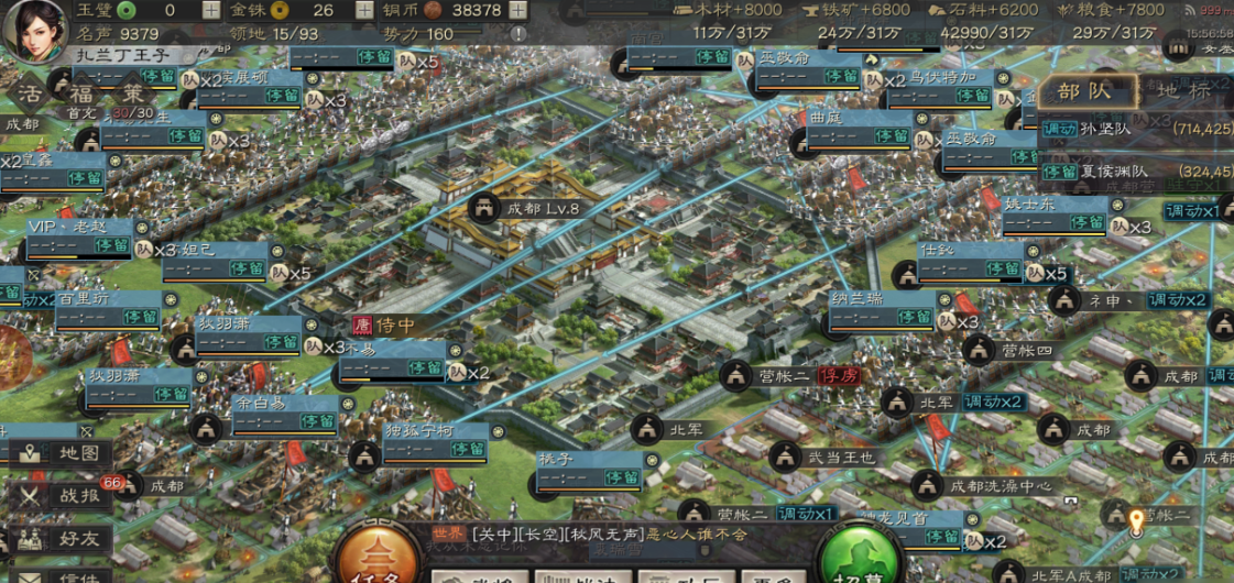 武将培养需注重战法联动性,新手期战法点返还比例为100%,可自由调整技能搭配。紫色武将觉醒后强度接近低红度橙将,是零氪玩家的过渡首选。每日必做事项包括贼寇讨伐、试炼挑战和木牛流马拦截,这些玩法能稳定提供资源补充。赛季中期若发展受阻,可通过分城建设或迁至资源州重新布局,比重生更利于保留核心战力。