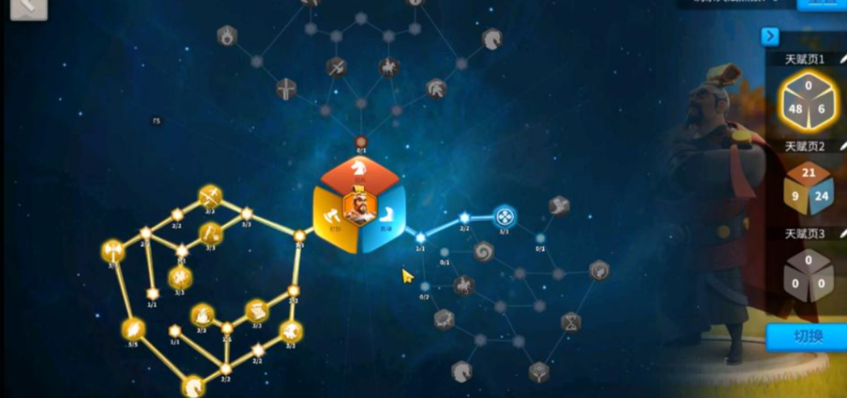 天赋加点是影响曹操实战表现的重要因素。他的天赋树主要有骑兵、打野和机动三个方向。如果想让他带骑兵冲锋,主点骑兵天赋能大幅提升输出和速度;如果更喜欢打野或扫田,机动天赋会更适合,跑得快才能抢到更多资源。不过大多数小伙伴会选择混合加点,比如先点机动天赋的千里良驹提升移速,再补骑兵天赋的伤害加成,这样既能打架又能赶路,灵活性更高。