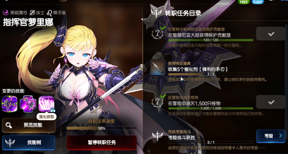 暗枪转职任务的核心目标是累计贡献度,需要消灭1500只怪物才能达成要求。这个任务看起来有点肝,但只要选对刷怪路线,效率会高很多。推荐的路线是黑暗祭坛→副本4-9→副本5S→副本2S,按照这个顺序刷怪,既能积累贡献度,又能顺便收集材料。暗枪作为平民战神,前期获取容易,培养后中后期强度非常可观,转职后属性成长甚至能媲美五星角色,绝对值得投入时间。