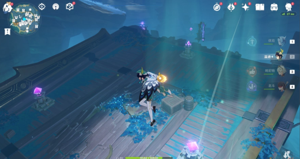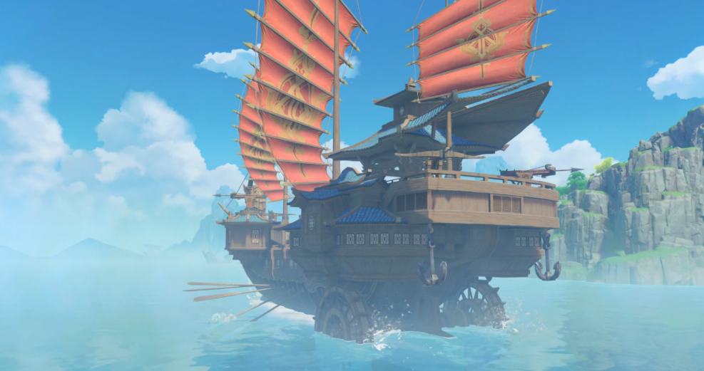 前往孤云阁秘境传送点,向右手边方向行进即可看到停泊的船只。由于船上没有直接传送点,需从高处滑翔或游泳登船。建议使用体力消耗较低的角色如凯亚,通过凝冰渡海可节省时间。登船后与北斗对话触发剧情,船只将自动航行至稻妻城。对话过程中注意不要跳过关键信息,部分NPC会提供实用道具如三星弓和经验书。
