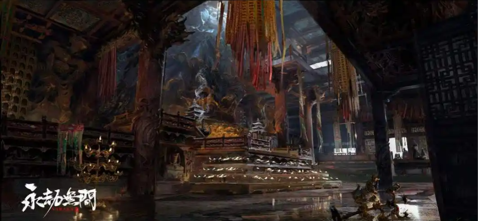 落日寺作为多层结构的寺庙建筑群,包含主殿、钟楼、庭院等多个战术点位。玩家开局可选择直接跳伞至寺庙顶层快速获取高级装备,但需承担更高交战风险;亦可优先占领外围院落,利用房檐和立柱进行视野压制。战斗中需合理运用飞索位移和地形高低差,避免陷入被多人围攻的被动局面。远程武器在开阔庭院能发挥优势,而近战武器更适合殿内狭小空间的缠斗。