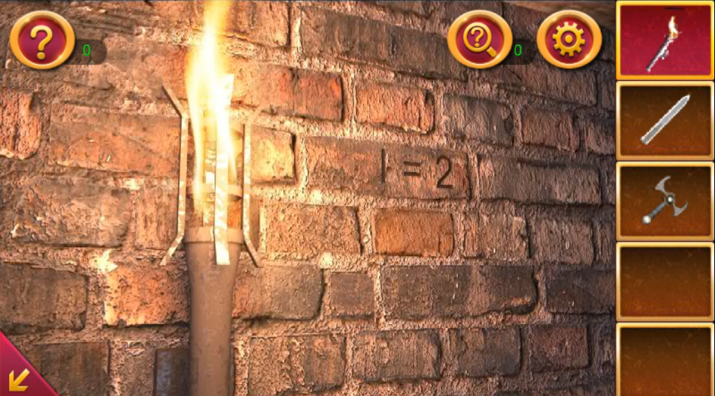 首先咱们要捡起左下角的火把,然后用墙边燃烧的火把把它点燃。点燃后记得用它去照亮右边墙壁上的另一个火把,这时候会看到一个重要提示I=2。接着用火把照亮左边墙壁的阴影处,会发现一把钥匙藏在那边。这把钥匙可是打开左下角箱子的关键道具哦。