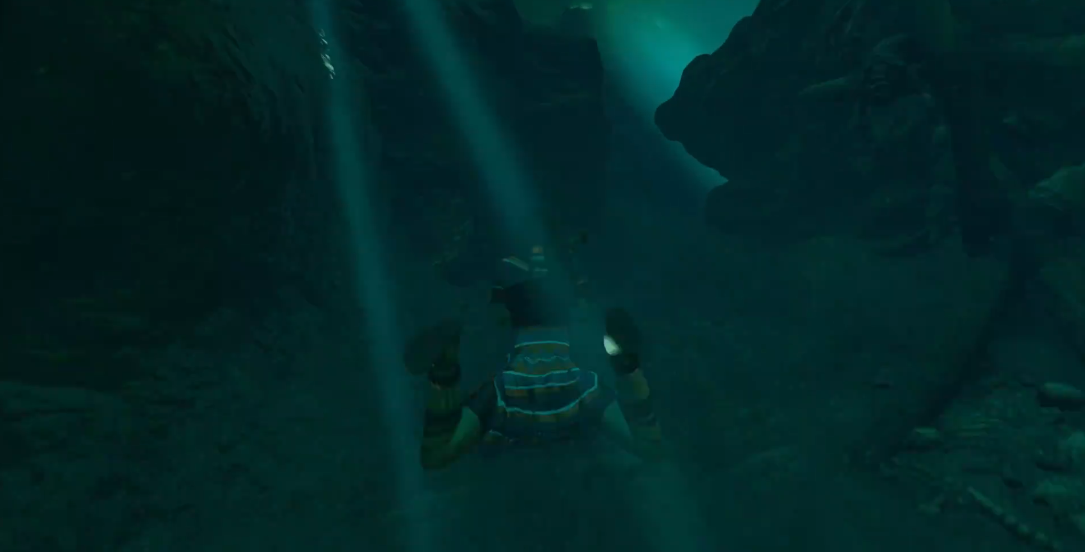 进入灰岩坑的第一步是从水下入口游进去,上岸后往前走来到沼穴入口。沿着右侧滑索滑到对面,这里会看到灰岩坑景点大本营。在大本营旁的遗迹入口地上放着一封信,记得查看能