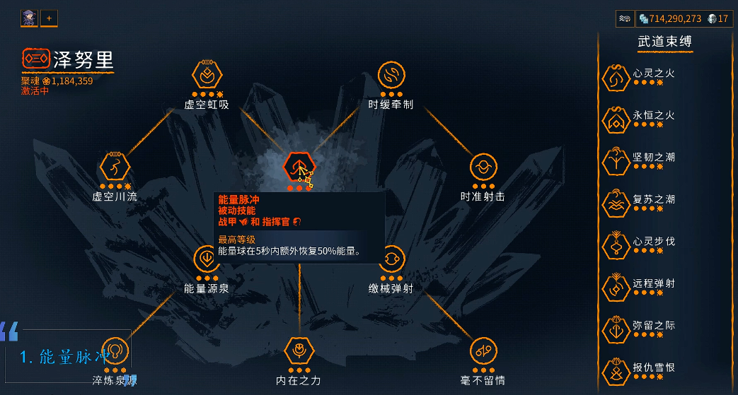 如果小伙伴之前选错了其他流派也别急,泽努里是可以随时切换的。只要专精点数够,在专精页面点一下激活就能换过去。平时多刷三傻或者平原赏金,掉的夜灵碎片也能换成专精点数,这样升级技能会快很多。记住要把重要技能优先点满,比如回蓝和减伤类,实战中特别实用。泽努里的核心玩法是配合团队打持久战,尤其是高难度任务里能发挥最大作用。