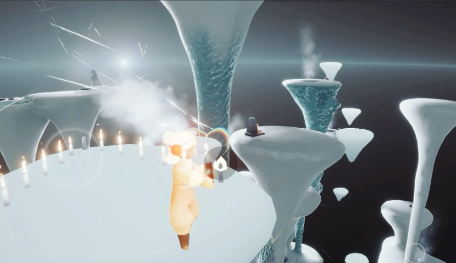 火试炼用背背飞就更方便了,尤其是第三关。先让一个人背上另一个,然后第三人再发起背背,这样能看到双重图标。起飞时要背对门口,举着蜡烛防止变黑。飞到合适高度后断开牵手,直接滑到最后一关的台阶上。这里不用担心被怪物碰到,因为背背飞的高度足够避开危险。如果中途失败了也别急,多试几次熟悉节奏就好。