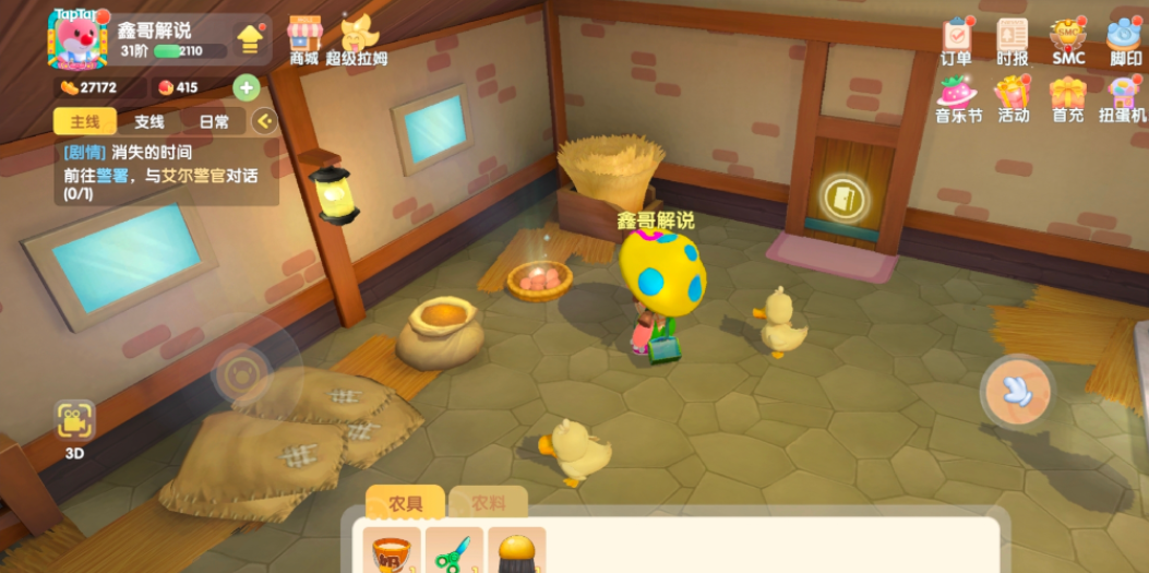 将鸡放回鸡舍的核心方法是使用鸡舍内的黄色铃铛。玩家进入鸡舍后,点击悬挂在墙上的铃铛,系统会触发召回指令,散养在农场各处的鸡会陆续回到鸡舍内。需召回并非即时生效,