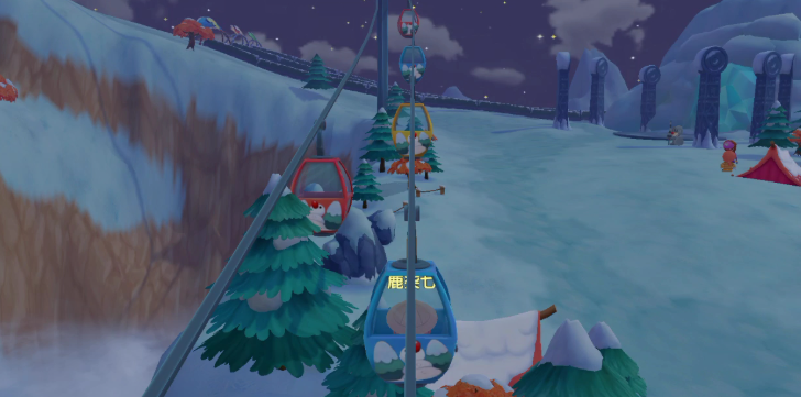 到达雪山后,你会发现这里可玩的内容非常多,绝不仅仅是个钓鱼点。山顶上有超级长的滑雪道,可以体验刺激的滑雪,还有一个火箭发射场可以参观。山顶温度低,建议换上厚实一点的装扮再上去,不然小摩尔可能会觉得冷哦。在雪山地图里,还藏着不少有趣的小细节和互动,比如在火堆旁边可以点击互动烤火取暖,在茜茜的帐篷外面能看到会自己动的扫帚和气球,这些设计让整个探险过程充满了意外之喜。如果你靠近路边的草丛或者树木,点击互动键还可以把树上的积雪拍下来,非常有意思。