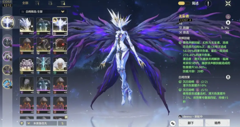 声骸搭配采用COST43311的组合,首选无妄者或無冠者套装,前者能在共鸣解放后提升技能伤害,后者则专注于暴击率和暴击伤害的强化。主词条优先选择暴击率、暴击伤害和湮灭伤害加成,而副词条则侧重普攻伤害、共鸣解放伤害等直接增益属性。这种配置能有效避免攻击力稀释问题,确保满命状态下的输出乘区得到最大化利用。