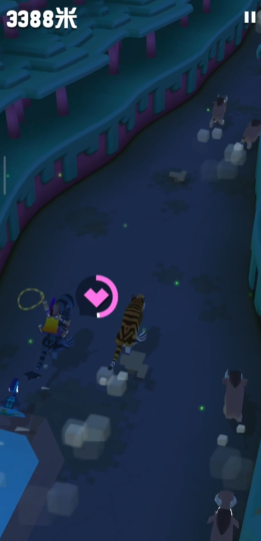 累计捕食满30只动物的瞬间,场景中会自动刷新出异形虎,其外观特征鲜明,辨识度极高,此时需立刻放弃当前骑乘的普通老虎,精准跳跃到异形虎背上,骑乘后按照常规驯服机制操作,持续按住屏幕维持平衡,等待头顶驯服进度条完全填满,期间不能出现掉落、撞击障碍物等失误,进度条满额后即完成抓捕,异形虎会自动收录至动物园栖息地,后续可用于园区展示与跑酷玩法。