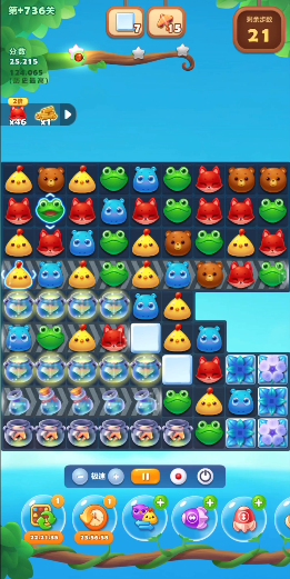 关卡中出现的独眼兽是重要助力,围绕独眼兽进行消除可随机生成特效,大幅提升清障效率,当合成魔力鸟后,优先与爆炸特效或直线特效交换,触发全屏清屏效果,快速清理密集障碍区与目标动物群。过程中需紧盯收集目标,每一步操作都要围绕目标动物所在区域展开,避免偏离核心任务导致步数不足。