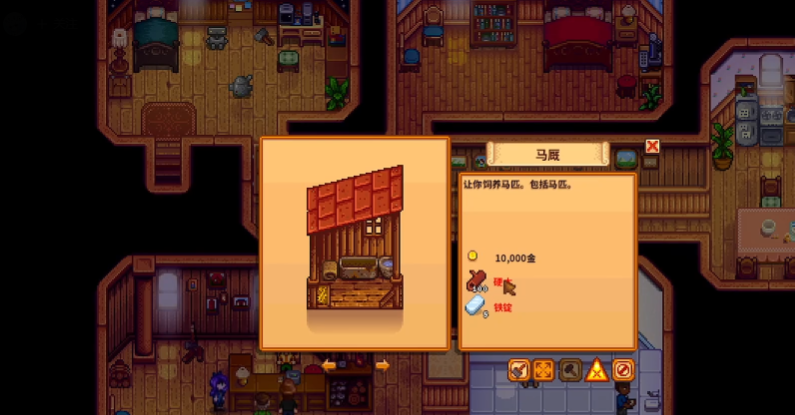 养马的成本不低,前期如果金币紧张,可以先攒钱再考虑建造马厩。硬木和铁锭的收集也需要时间,建议优先升级工具和背包。有了马之后,跑图效率会大幅提升,尤其是去偏远矿区或小镇参加活动时特别方便。记得把马厩建在农场入口附近,这样出门就能骑马,不用来回跑。