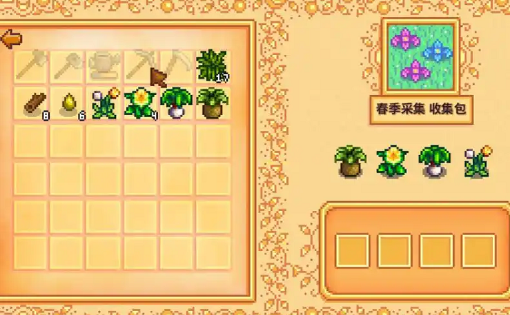 黄水仙虽然不能恢复体力或血量,但它的性价比在春季觅食物品中算是很高的。如果咱们打算走送礼流,可以优先送给桑迪;如果急需金币,卖掉也不亏。不过长远来看,留着完成收集包或者做成种子更划算,毕竟春季种子种出来的作物还能进一步加工或出售。