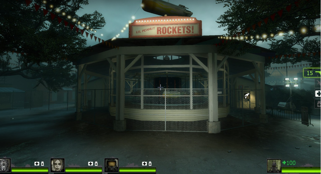 游乐园关卡位于黑色狂欢节战役的第二章节,是游戏流程中极具特色的场景之一。该关卡以废弃游乐园为背景,玩家需要穿过游乐设施、地下通道和表演场地,最终抵达安全屋。关键路线为:从安全屋出发后左转直行,穿过游乐设施区域,跳下坡道进入下水管道,通过地下通道后上楼,沿木板路径前进至旋转木马区域,关闭旋转木马电源后触发尸潮,最后进入隧道尽头的安全屋。路线中存在多个补给点和近战武器刷新位置,建议优先获取消防斧或高尔夫球杆等高效近战武器。