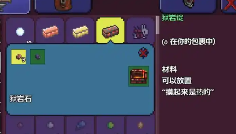 成功采集到的地狱石本身并非最终可用的材料,它需要在地狱熔炉旁与黑曜石按一定比例共同冶炼,从而合成更为重要的狱岩锭。这种锭是肉山前阶段最顶级的制作材料之一,能够用于锻造拥有出色防御属性的熔岩盔甲套装,以及一系列强力的武器和工具。可以说,获取并冶炼地狱石,是玩家挑战血肉墙、进入困难模式之前,提升自身战斗与生存能力的核心环节之一。其坚韧耐用的特性,使得以此为原料制作的装备成为了迎接后续严峻挑战的重要基石。