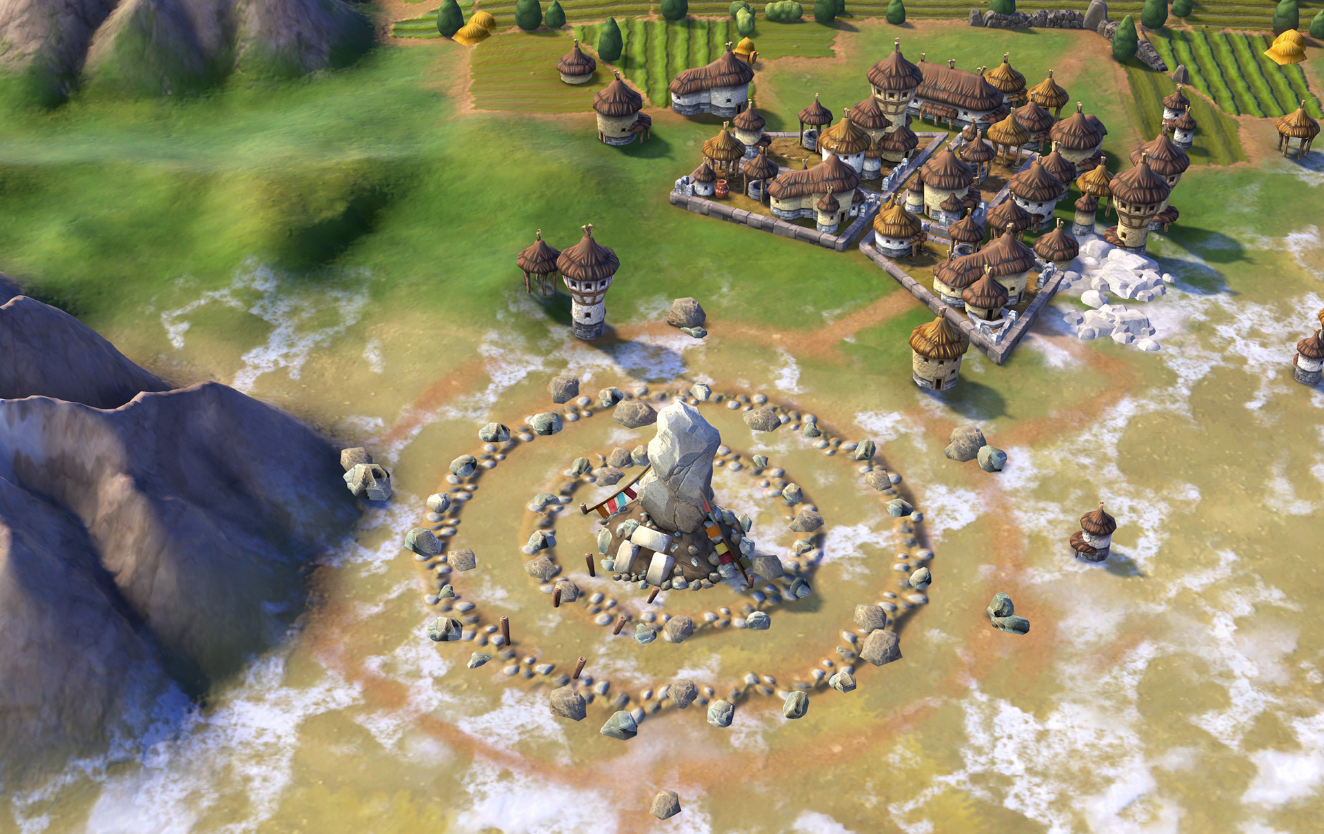 大陆地图陆地面积广阔,大片连续的平原与草原区域,为城市扩张与区域布局提供充足空间,不会出现岛屿地图那样地块受限的问题。地图内河流纵横交错,形成大量肥沃的沿河平原,这些地块是建设农场的最佳选择,早期就能实现粮食高产。大陆地图的丘陵与森林分布均衡,平原负责粮食产出,丘陵开发矿井提供生产力,森林则能通过伐木场或砍伐获取产能,完美平衡食物与生产,让城市既能快速涨人口,又能顺利建造区域、建筑与奇观。同时大陆地图中AI文明分布相对分散,早期不易爆发激烈冲突,能安心发育到中后期。