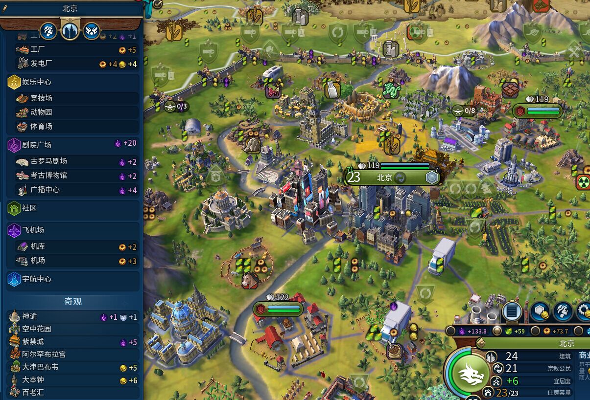 选择这类地图后,种田流需把握核心玩法,首都优先选沿河多粮食资源的位置,第一时间建造农场与引水渠,稳住人口增长节奏。扩张时优先抢占淡水平原与湖泊周边地块,城市间距保持合理,避免资源冲突,同时预留区域建设空间。发展顺序上先提升粮食产量,人口达标后再补生产力,优先建造粮仓、引水渠、水力磨坊等农业建筑,搭配农业相关政策卡,强化粮食产出。中后期围绕河流与湖泊布局工业区与商业中心,借助地形与资源优势,实现科技、文化与经济的全面腾飞。
